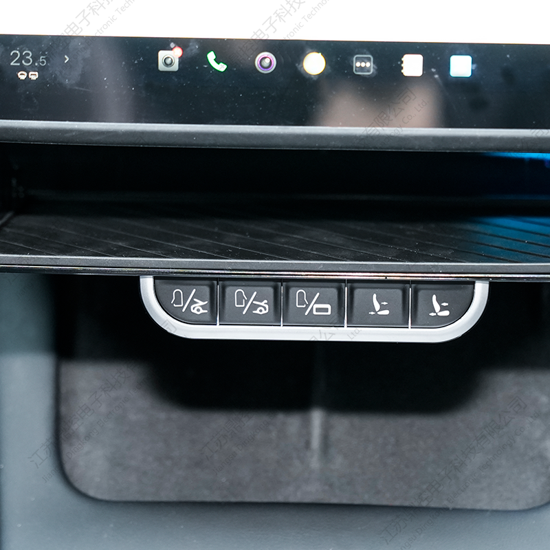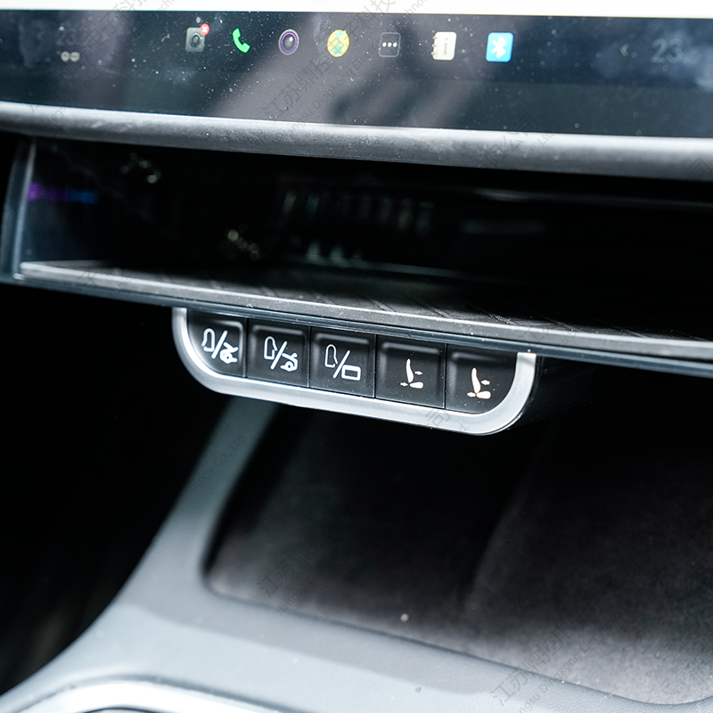 Beş adet dokunsal metal düğme, tepsinin altına düzgün bir şekilde yerleştirilmiştir ve temel araç işlevlerine sezgisel erişim sağlar. Her düğme net bir dokunsal tıklamayla yanıt vererek kullanıcılara sağlam bir kontrol hissi verir. İşlevler arasında ön kapıların, ön ve arka bagajların açılıp kapatılması ve şarj portu kapağının kontrol edilmesi yer alır; bunların hepsine anında parmaklarınızın ucunda erişebilirsiniz.